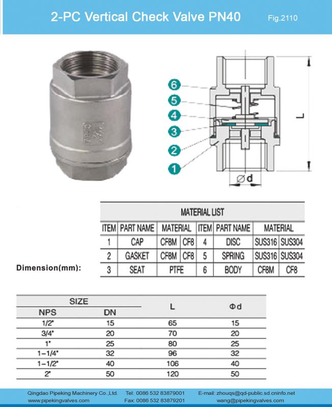 2-PC Vertical check valve PN40
